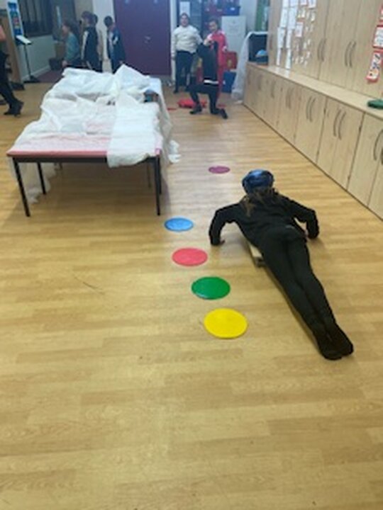 Mrs Kinsey had the great idea for some PE activities inspired by events - Skeleton, Biathlon, Curling and Ski Jump.